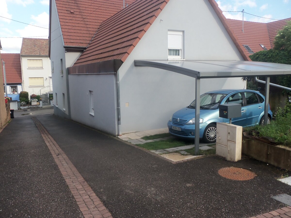 Šarmantni dupleks od 50 m2, potpuno renoviran, s 1 spavaćom sobom s 1 krevetom za jednu osobu, a druga (odvojena zavjesom ) 2 odvojena kreveta. Smještaj ima svu udobnost koja vam je potrebna za smještaj s porodicom, prijateljima ili za poslovni smještaj. Dođite i uživajte u njegovoj cvjetnoj terasi i malom vrtu. Nalazi se u Eckartswilleru, na rubu šume u malom alzaškom selu, 3 km od Savernea i njegove željezničke stanice (8 minuta vožnje) i 30 km od Strasbourga.