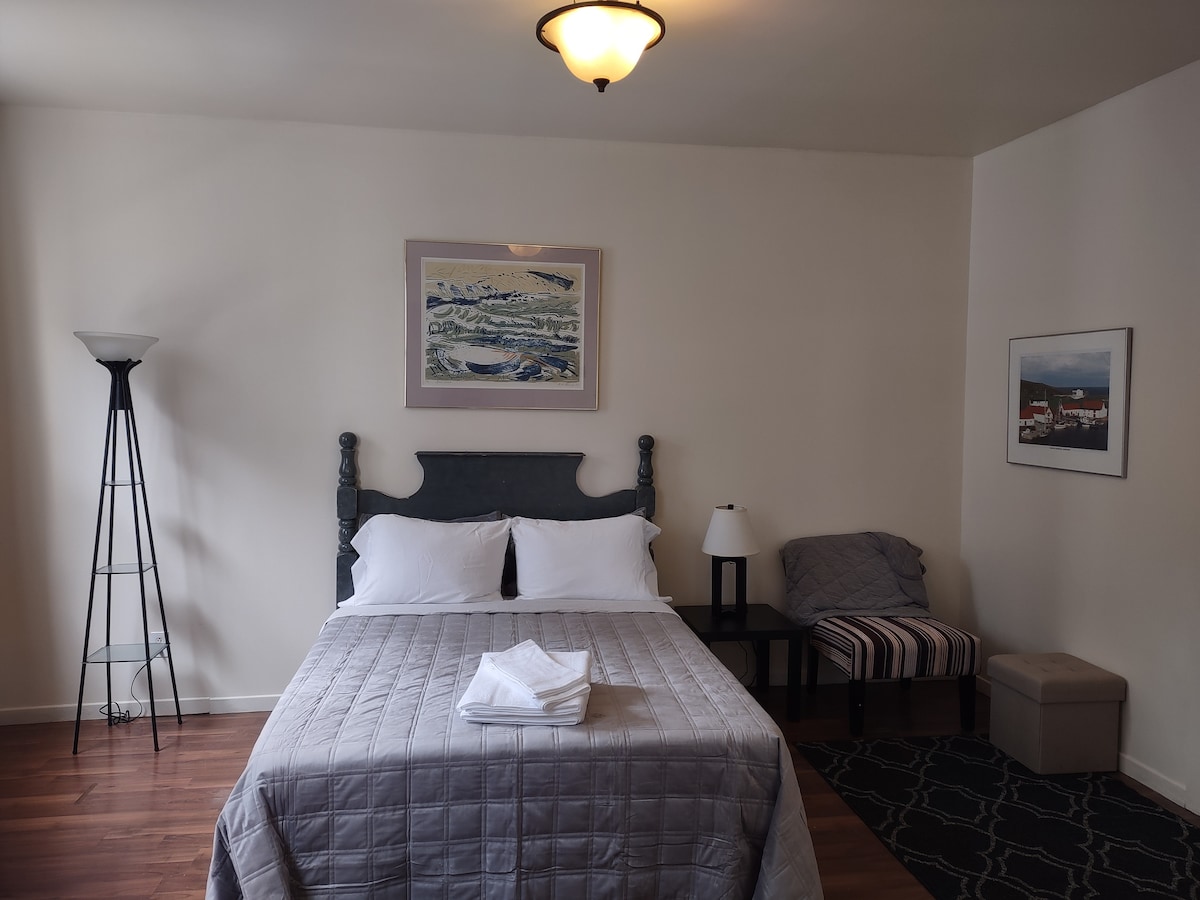 Uživajte u jednostavnom pristupu svemu iz ovog savršeno smještenog prostora, koji se nalazi u ulici Duckworth, u srcu Downtown St. John 's. Cabot Tower/Signal Hill, kao i Narrows/Battery su vidljivi kroz prozor vaše spavaće sobe. Udaljeni ste samo nekoliko minuta hoda od Waterfronta , odličnih lokalnih restorana, pivara, kafića i pubova. 10 minuta vas stavlja u prelijepi Bannerman Park, a još 10-15 vas stavlja na jezero Quidi Vidi, dom kraljevske regate St. John 's. Jedva čekamo da vas ugostimo!