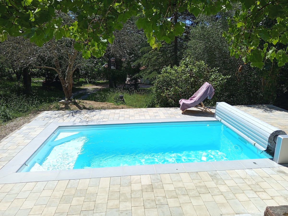 Ovaj mirni smještaj iznutra i izvana nudi opuštajući boravak za cijelu porodicu Mali dodatak: prskanje u potopljenom drvenom bazenu ili 400 m besplatnog plivanja za sportskije Uživat ćete u 3 spavaće sobe i 2 kupatila s ukupno 7 kreveta Plancha ,roštilj i natkrivena terasa