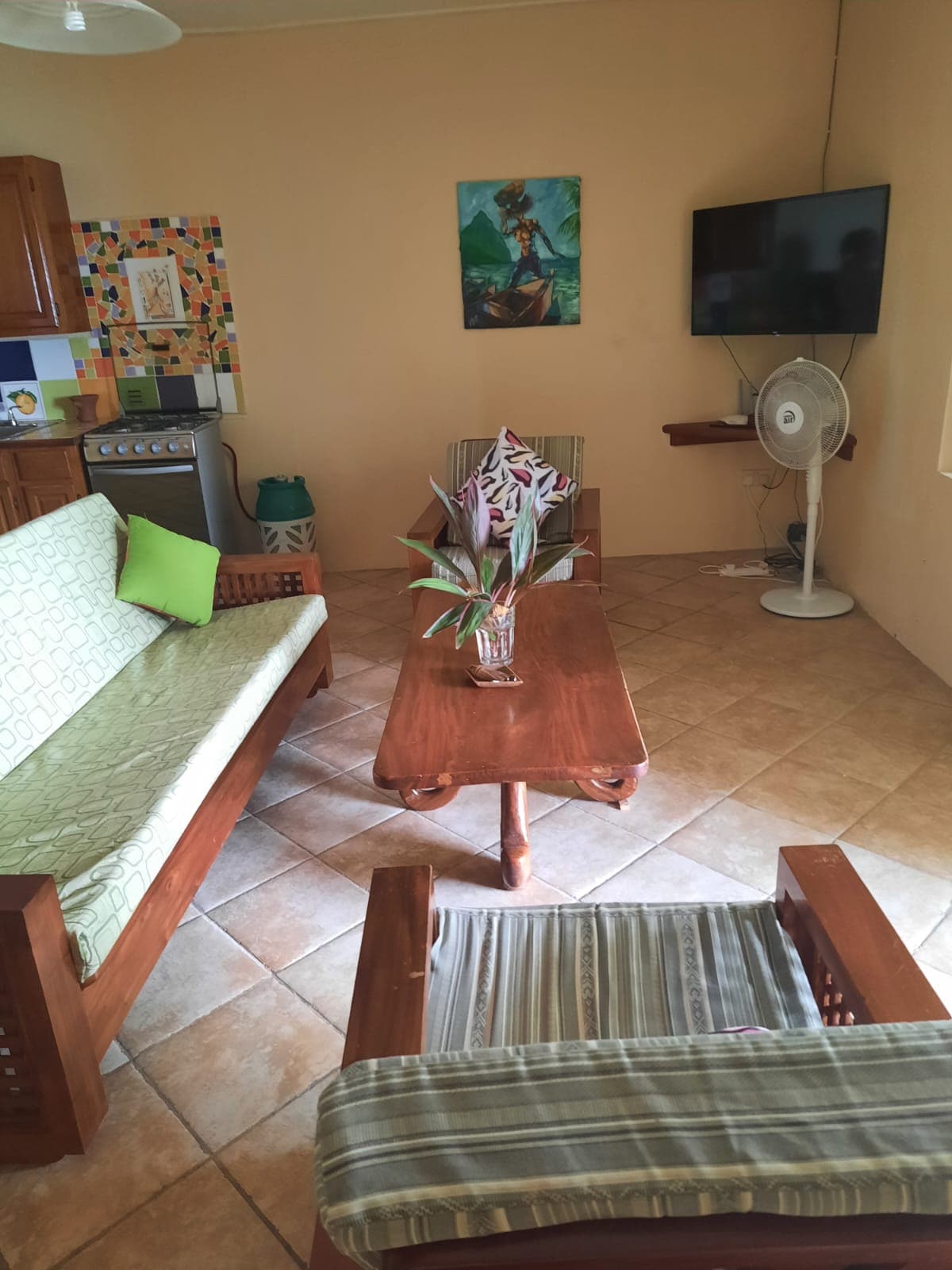 Prilično savremeni stan smješten u ruralnoj zajednici La Fargue, Choiseul. Udaljen je oko trideset minuta od Međunarodnog aerodroma Hewanorra u Vieux Fortu i trideset minuta od slikovitog grada Soufriere. Udaljeno je oko sat i 30 minuta vožnje od aerodroma Vigie u Castriesu. Apartman za odmor je savršen za porodični odmor, parove i samce. Voljeli bismo ugostiti vas, vašu porodicu i prijatelje, pa slobodno nas kontaktirajte.