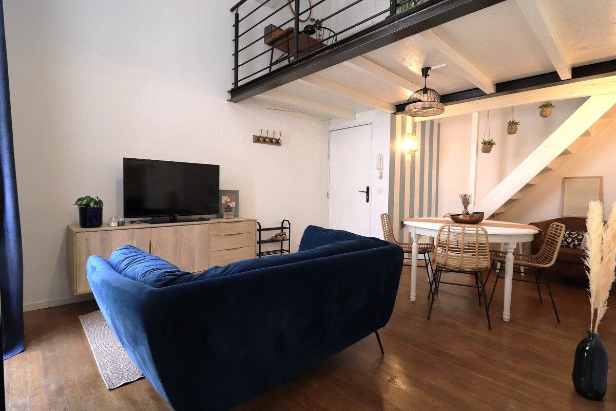 🏡 Topli dupleks 40m² – 5 minuta hoda Stanica i centar grada 🛋️ Prizemlje: svijetli dnevni boravak s kaučem i TV-om/internetom; Potpuno opremljena kuhinja: indukcijska ploča za kuhanje, rerna, mikrovalna pećnica, čajnik, aparat za kafu... Sve da se osjećate kao kod kuće! ; Moderno kupatilo s tuš kabinom u ravnini poda 🛏️ Na mezaninu: Prostor za spavanje od 15 m² s bračnim krevetom; Praktičan radni prostor za rad ili čitanje ✨ Idealna čahura za boravak u paru, solo ili na poslovnom putovanju