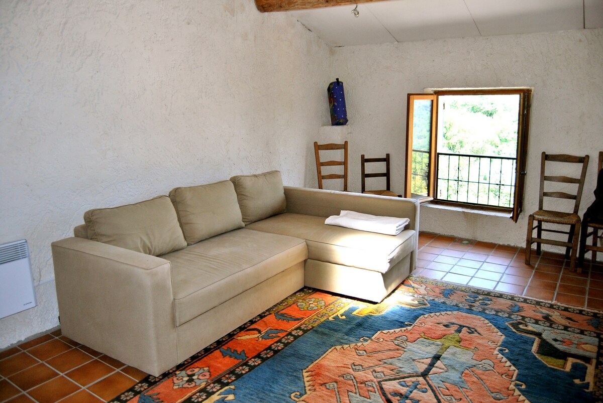Seoska kućica u prizemlju, nezavisna spavaća soba, tuš kabina, odvojeni toalet i dnevni boravak/kuhinja u srcu regionalnog parka Luberon, u starom zaseoku. Direktan pristup zaštićenom prirodnom području. Mali bazen za dijeljenje! Životinje na imanju (magarci, konji, psi, mačke, kokoši, ovce). Idealno za ljubitelje prirode, planinarenja, penjanja, brdskog biciklizma... ili samo za bijeg od svega. Dobro došli! Pažnja, staza zahtijeva razmak od tla veći ili jednak standardnom vozilu.