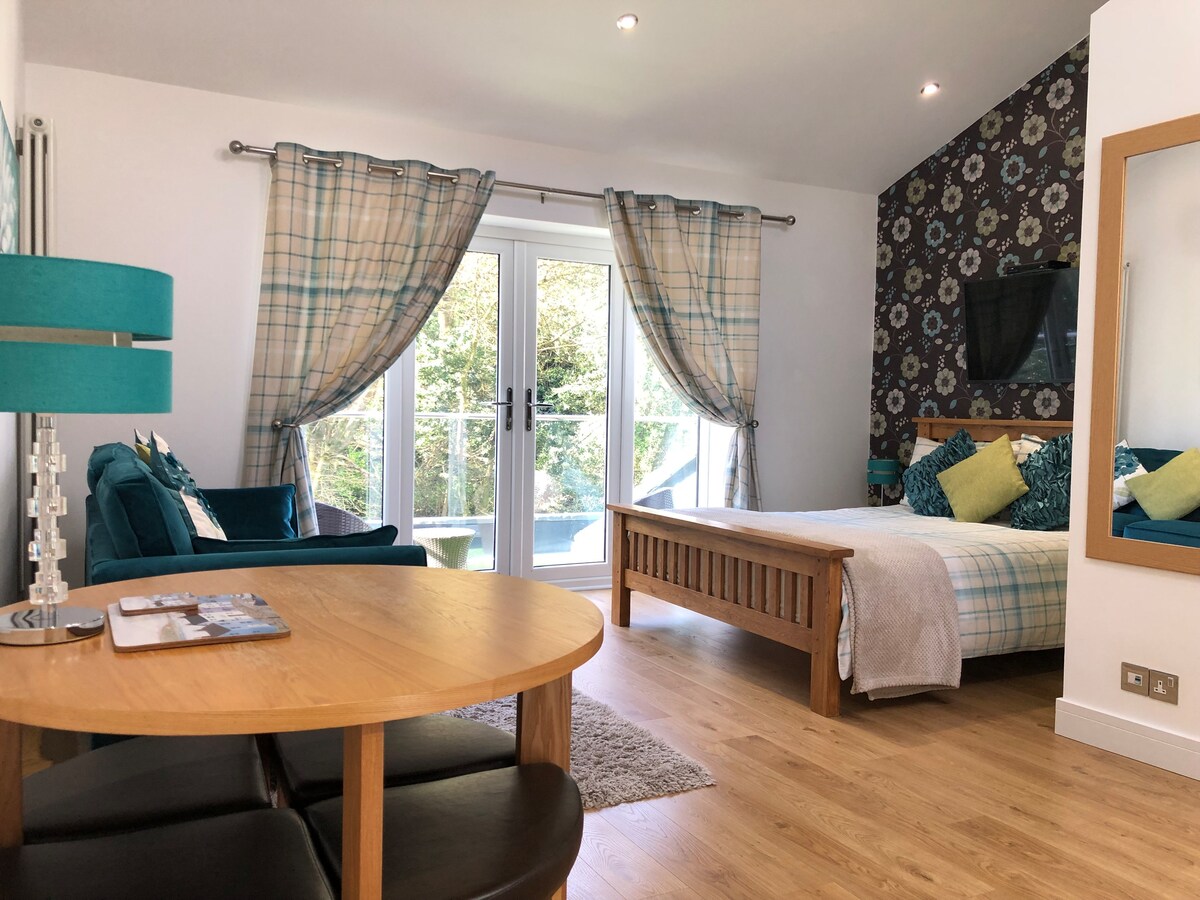 Trip Advisor Certificate of Excellence. Located in a quiet wooded valley on the outskirts of St Austell town. This modern, smoke & pet free Studio is the perfect holiday retreat for 2 looking to experience the delightful Cornish Coast. After a busy day, pour up a glass of wine, open the french doors, sit out on the balcony overlooking the woods & RELAX! Great location for exploring Cornwall. Private, off-road parking for one car. Friendly, local hosts!