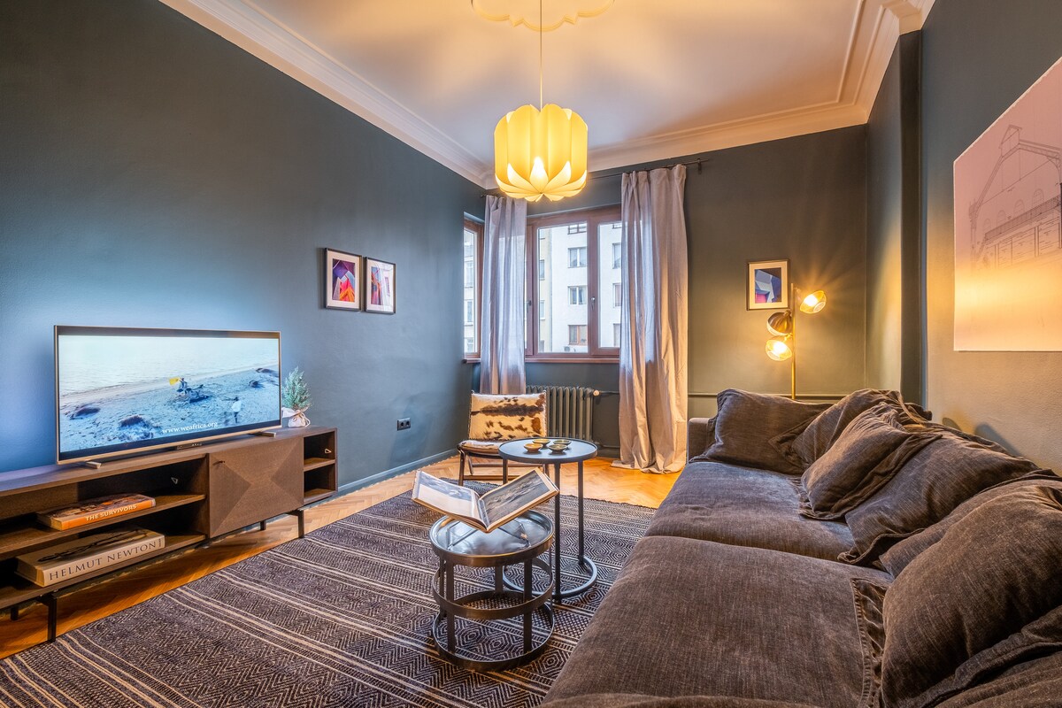 Ovaj tihi, romantični stan u historijskom centru Sofije izgleda kao pravi dom. Ispunjen svjetlošću i pogledom na planinu Vitošu, nalazi se na nekoliko minuta hoda od znamenitosti kao što su katedrala, tržnica i bulevar Vitoša. Savršeno za parove, samostalne putnike ili radnike na daljinu, pažljivo je dizajniran s kvalitetnom posteljinom, brzim Wi-Fi mrežom, kompletnom kuhinjom i knjigama koje vas pozivaju da se opustite.