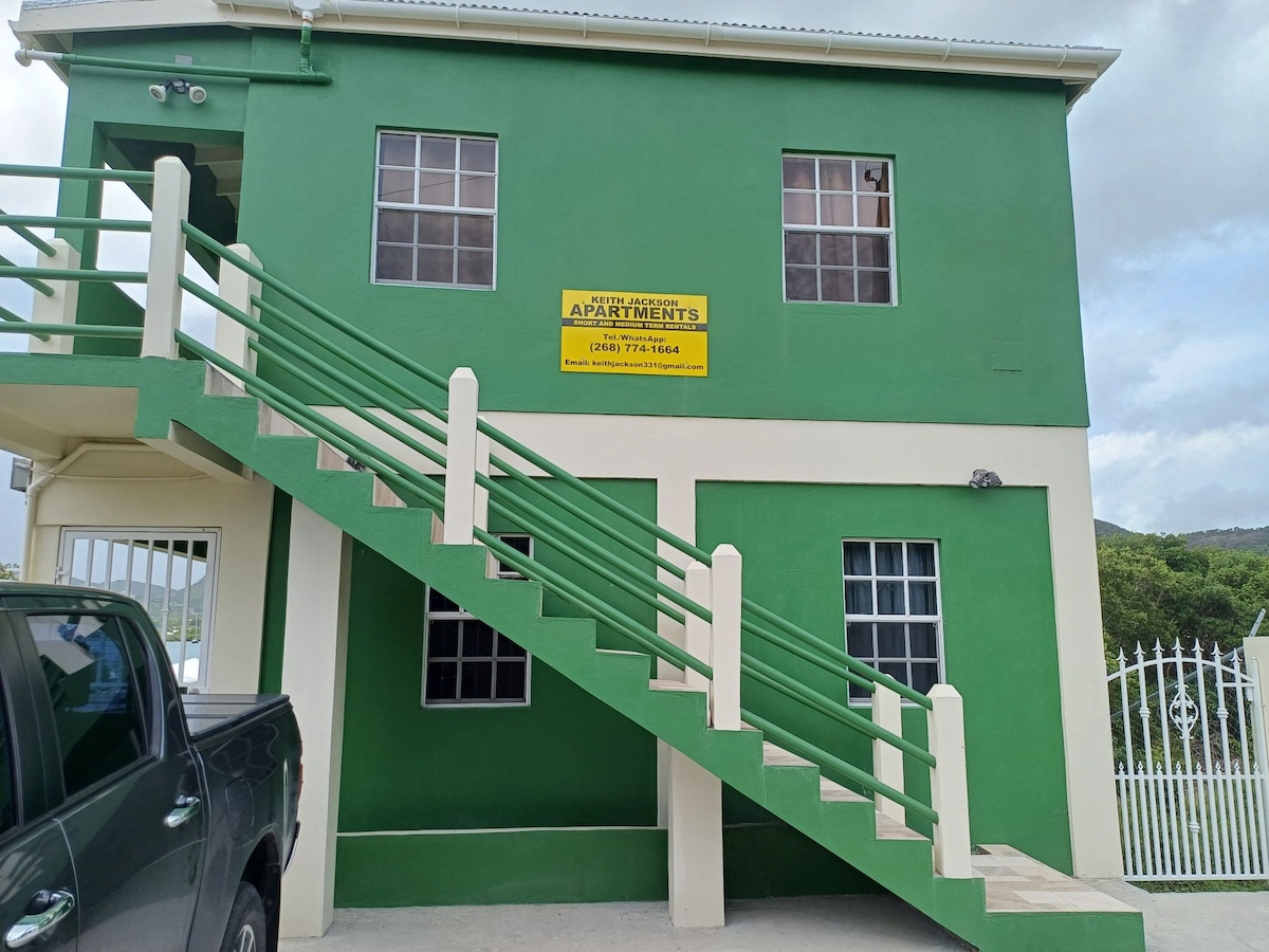 Pobjegnite u naše moderno karipsko utočište! Smješten na selu, ovaj elegantni stan nudi opuštajući doživljaj i zadivljujući pogled na zalazak sunca s balkona na krovu. Osim toga, nudimo povoljne smještaje za iznajmljivanje automobila i lokalne izlete za vaše praznične avanture. Uživajte u dnevnom boravku otvorenog koncepta sa savremenim dekorom, kuhinjom i udobnim bračnim krevetom. Opustite se u mirnom okruženju, istražite Antigvu ili se samo opustite i uživajte u živopisnim zalascima sunca.