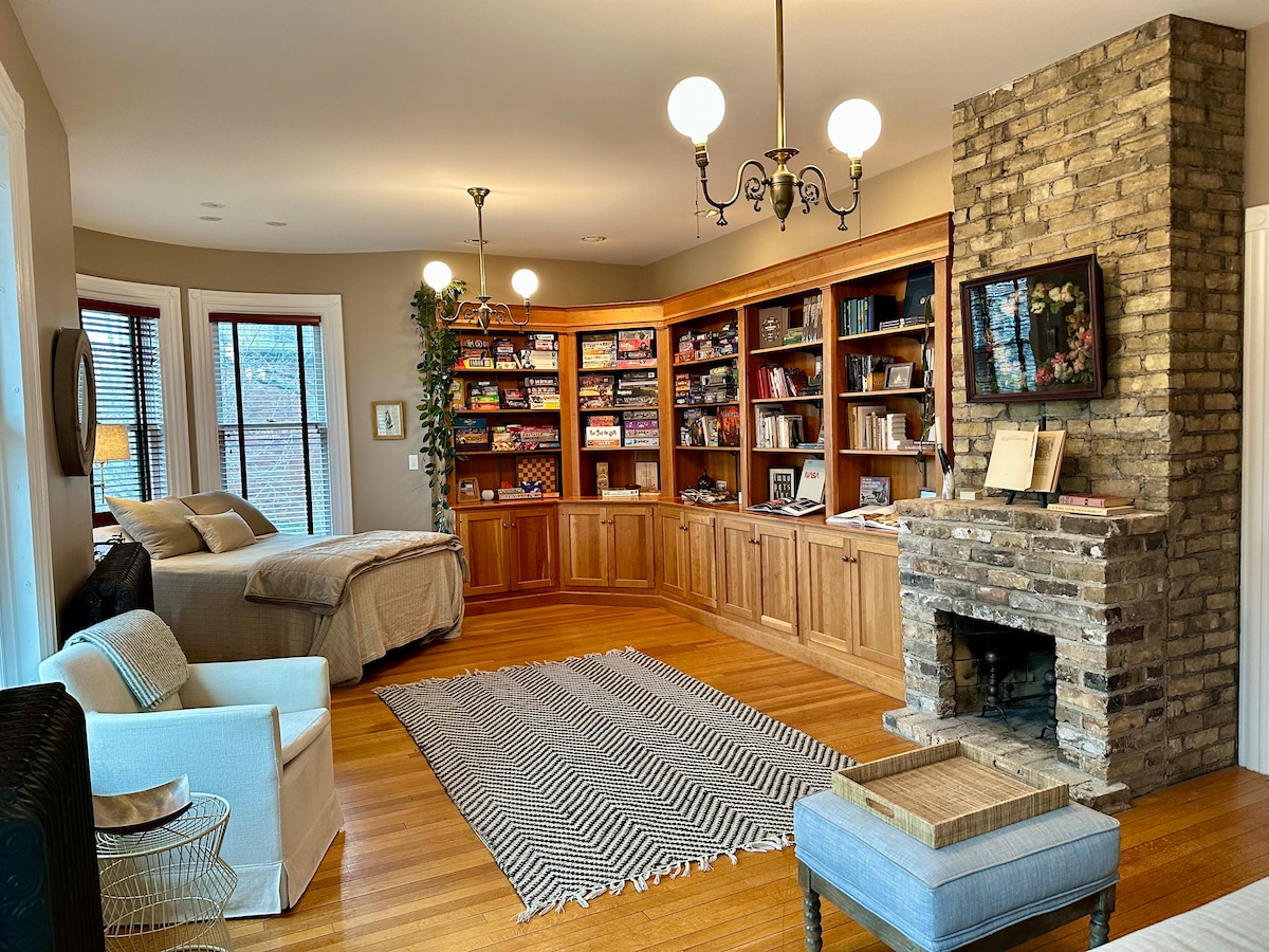 Dobro došli! Ovaj udobni dvosobni apartman s kaminom i jacuzzijem smješten je neposredno ispod avenije Summit, pored avenija West Seventh i Grand Avenue. Prošećite do lokalnih restorana, arene Grand Casino i umjetničkih sadržaja. * Grand Casino Arena: 10 minuta hoda * Ordway: 15 minuta hoda * Restorani/pivara udaljeni su manje od milje hoda. * Aerodromski metro br. 54 do centra grada. 8 milja Ovaj apartman se nalazi na području Lako 'tiapi i teritorije Wahpekute -Octi ' Sakowin Oyate.