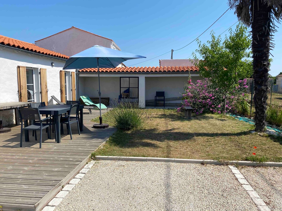 Idealna kuća za praznike. U blizini centra Château d 'Oléron (10 minuta hoda) tipičan mali grad klasifikovan, vrlo živahan ljeti, u blizini biciklističkih staza, blizu plaže (10 minuta hoda). zasjenjeni vrt, nije zanemaren. Savršeno za opuštajući odmor s djecom ili prijateljima. Za zimu postoji gorionik na pelet i električni grijači. Tipična tržnica Chateau d 'Oleron otvorena je tokom cijele godine. Kuća je ugodna i zimi.