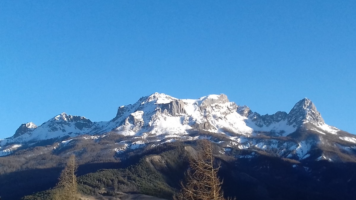 Za ljubitelje prirode, stan s opremom za kuhanje u staroj seoskoj kući smještenoj u borovima 15 minuta od Barcelonnette u srcu doline Ubaye, pogled na šešire Chapau de gendarme, Pain de Sucre, okrenut prema Pra Loupu. Staze za planinarenje i brdski biciklizam počinju od kuće. Omogućuju vam da brzo dođete do prekrasnih pogleda. Stan površine 38 m2 za do 4 osobe. Pristup šumskom stazom (500 m)