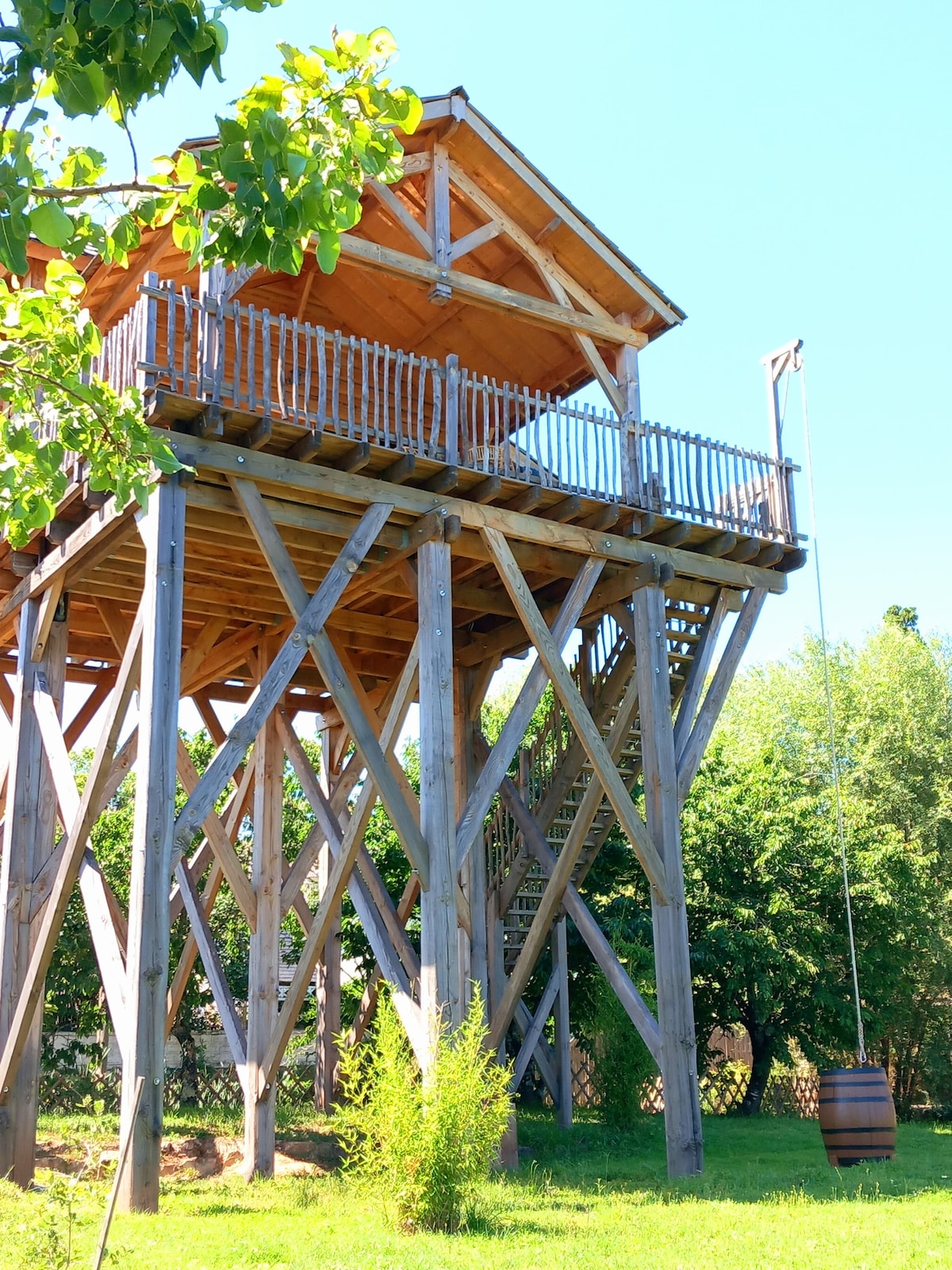 Opustite se u ovom mirnom i elegantnom prostoru. Uživajte u veličanstvenom pogledu sa visine od 6 metara, sami ste na svijetu! Jacuzzi čeka samo vas... Bez obzira na godišnje doba, uvijek ćete doživjeti nezaboravan trenutak ušuškanosti između Corrèzea i Périgorda. Savršena lokacija za razgledanje (pogledajte profil domaćina). Mogućnost odabira opcija prilikom rezervacije (masaža, jelovnik za večeru, gurmanska ponuda za dijeljenje, šampanjac, doručak, najam vozila 2CV, let balonom na vrući zrak...).