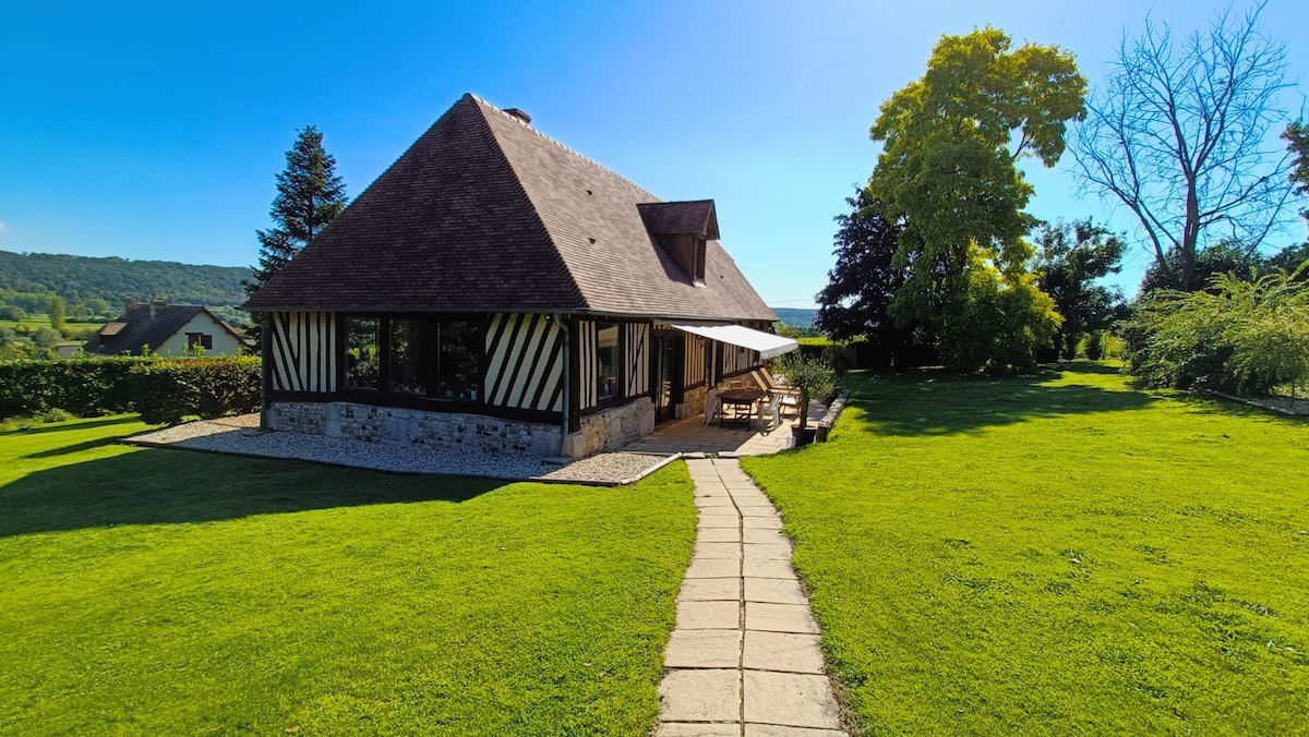 Tradicionalna normanska seoska kućica od pola drveta iz 15. vijeka, u odličnom stanju, s 9 kreveta i 5 tuš kabina, od kojih je jedna s kadom. Veliki kamini iz tog perioda. Velika parcela (više od jednog hektara) i izuzetan pogled na Marais Vernier Bazen (10 m x 4,5 m), grijan od aprila do oktobra, s odvojivim krovom Boules court Velika trampolina Dostupno je 5 bicikala 170 km od Pariza 20 km od Honfleura