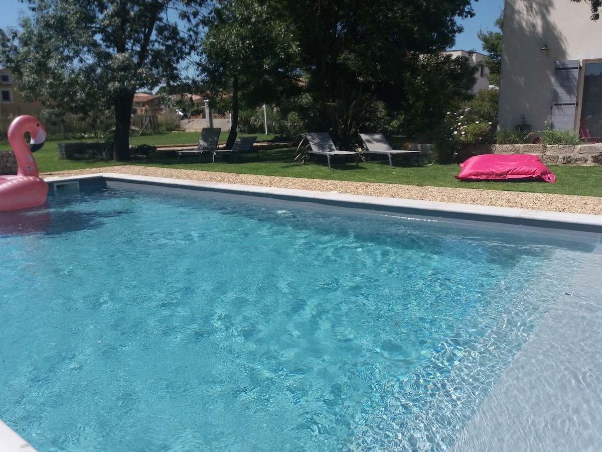 Dobro došli u Aubais in the Gard. Naša seoska kućica nalazi se u centru šarmantnog sela u blizini Sommieresa, Vergeze i Lunel na kapijama Camarguea manje od sat vremena od mosta Gard i Uzes između Nîmesa i Montpellier u blizini autoputa A 9 . Može primiti 5 osoba. Nalazi se iza dvorišta seoske kuće napravljene od Le Gard u kojem živimo. To je prekrasan tim, šarm, udobnost, mir i tišina vas čekaju.