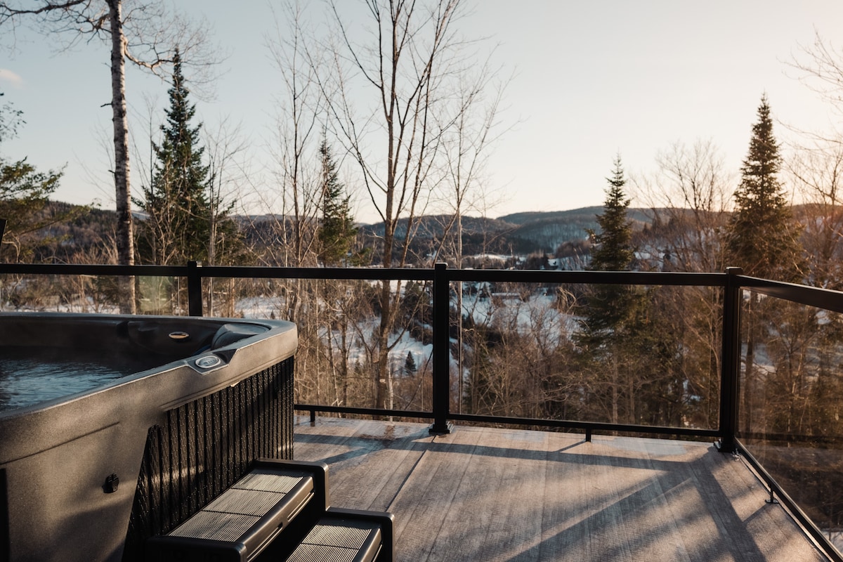 Le chalet de l'Orée du Bois Joli est situé à Val-David et possède une vue surplombant la cime des arbres! Installez-vous dans le spa pour observer les étoiles! Promenez-vous en raquette sur la propriété d'un acre qui longe les pentes du Mont Alta. Relaxez-vous dans notre hamac géant intérieur et profitez de la féérie de ce havre en bois! Randonnée, pentes des skis, trois belles plages et de nombreuses activités et attraits environnants vous attendent.