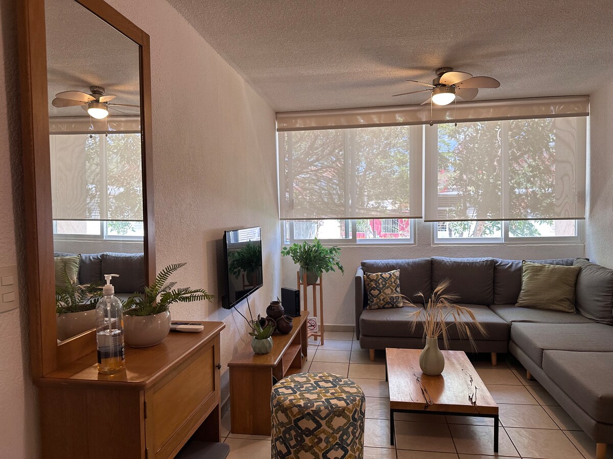 Vrlo lijep i udoban stan koji se nalazi u prizemlju, u srcu Huatulca, na nenadmašnoj lokaciji nekoliko koraka od restorana, barova i malog gradskog parka. Udaljeni smo samo 8 minuta od plaže automobilom! Mirno i sigurno područje sa stambenim nadzorom. Ima centar za veš, ekrane, satelitsku televiziju, Netflix, Wi-Fi i klimu u dnevnoj sobi i spavaćim sobama. Ako želite da vaš boravak bude još ugodniji, bazen i prostor za roštilj će se oduševiti!