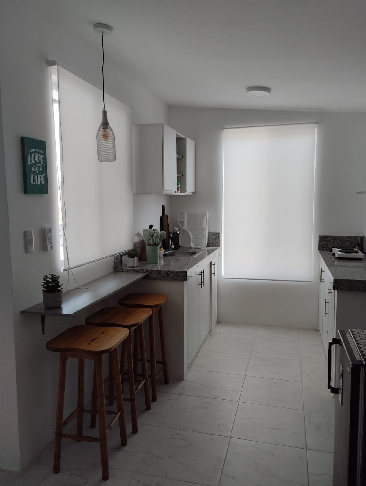 BIENVENIDO! SUITE de 1 habitación con cama de 2 plazas, sala con 1 sofá cama, colchoneta adicional, cocina estilo americana, baño completo y garaje. IDEAL para viaje por trabajo, parejas o familias pequeñas que buscan pasar sus vacaciones en un espacio seguro y cómodo. ¡Excelente ubicación! A 5 cuadras del mar. Podrás encontrar cerca un UPC, parque, farmacias, cajeros, restaurantes, mini markets, heladerías, gasolineras y más. Información detallada en la última foto.