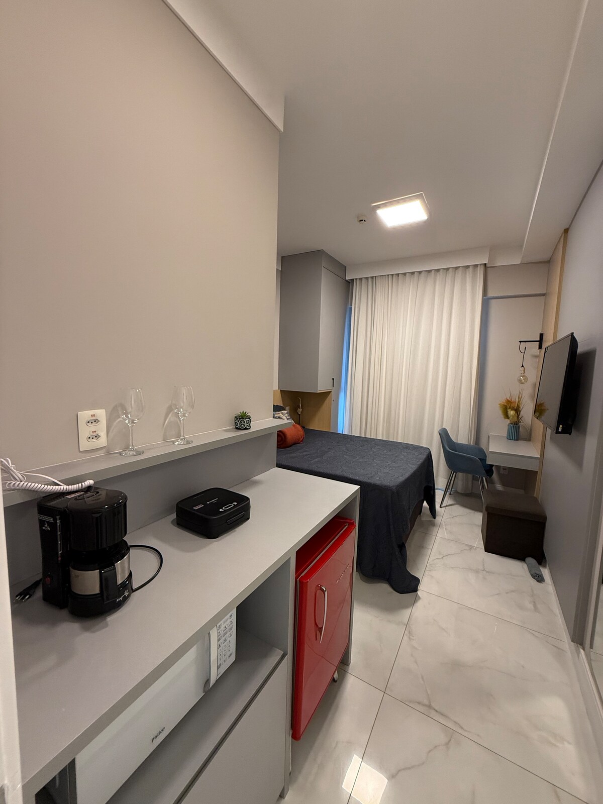 Udobna soba s privatnim kupatilom i klima uređajem, 500 metara od plaže Porto da Barra, s pristupom garaži i 24-satnom ulazu. Najbolje od Barra vas čeka, dođite i boravite kod nas, Cantinho da Barra je apartman u našem stanu Supermercado (doslovno pored njega), banke, trgovine, barovi, restorani i javni prevoz u blizini lokacije. Udobnost i privilegovana lokacija na jednom mjestu.