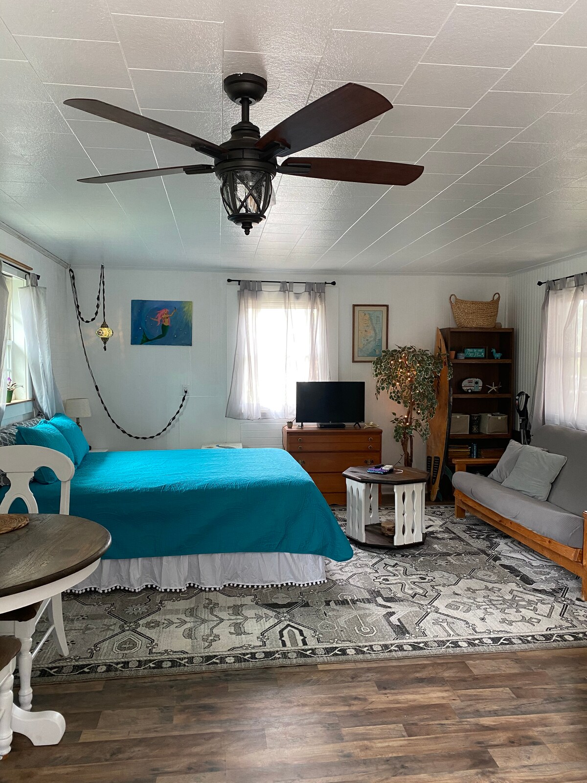Check-In at Noon and relax on the beach! Mini Dune Dancer is a private guest suite that is attached to our Classic Beach Box style home. We are just a few houses back from the Atlantic Ocean, a quick 5 minute walk to the beach! Located on a quiet street within walking distance to local restaurants, and coffee shop. Walk to the Atlantic Ocean for sunrise and the Pamlico Sound for sunset! Enjoy star gazing on your private deck!