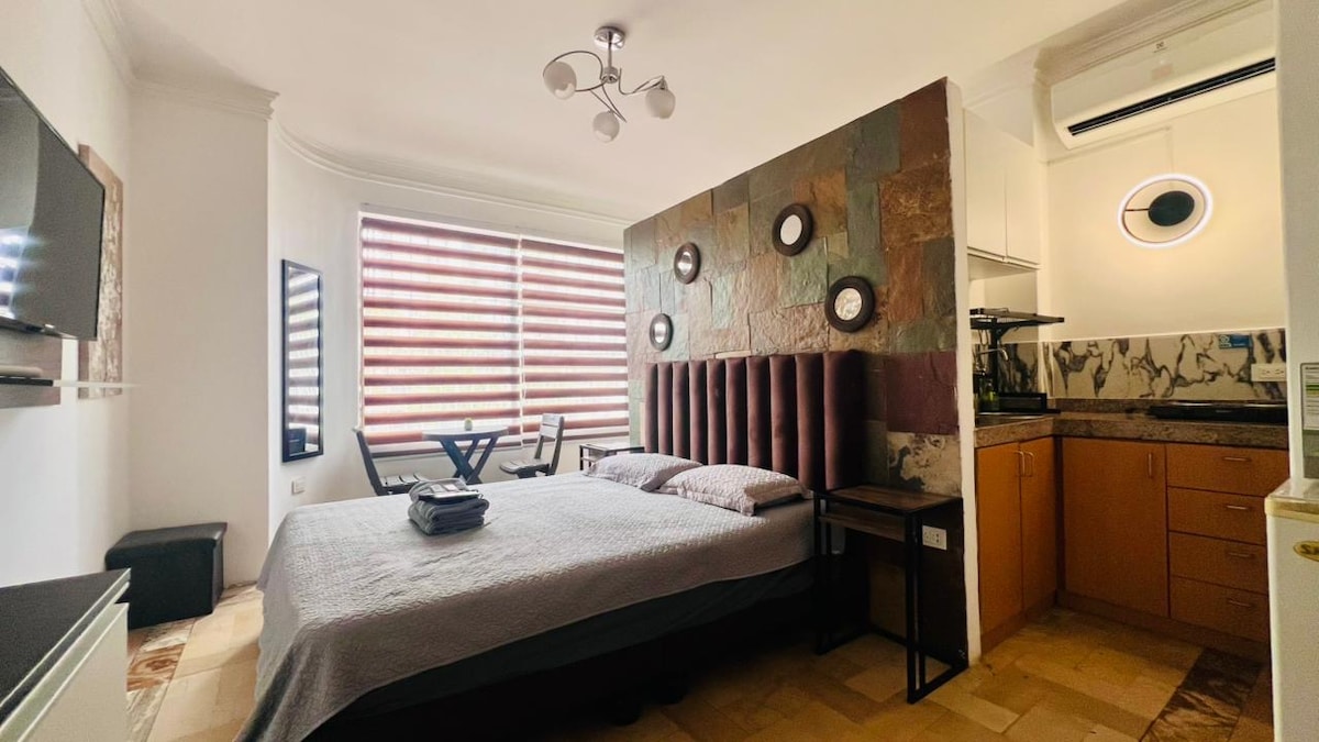 Suite full amoblada y renovada ideal para extranjeros y ejecutivos. Acabados de lujo. Cama queen size, sofá cama, smart-tv en sala y habitacion, wi-fi. Queda ubicado en una las zonas mas prestigiosas y a 3 minutos del aeropuerto. Cuenta con recepción disponible 24h. Cerca de cines, bancos, restaurantes, hoteles, supermercados, hospital y centros comerciales. Tiene lavadora y secadora, cocina eléctrica, refrigeradora, microondas, cafetera, tostadora y utensilios de cocina.