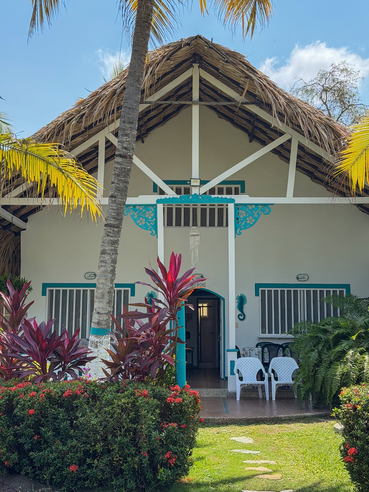 Super cool apartment in small beach front complex of just 6 properties, located just 7 minutes from coveñas center and in walking distance to beach bars / restaurants and some shops. The area is perfect for couples, families or friends with a relaxed atmosphere perfect for sunset lovers, walks along the beautiful beaches and generally relaxing The apartment has a spacious private terrace, with hammocks, and furniture, sea and garden veiws, just 30 seconds walk to the sea through the garden.