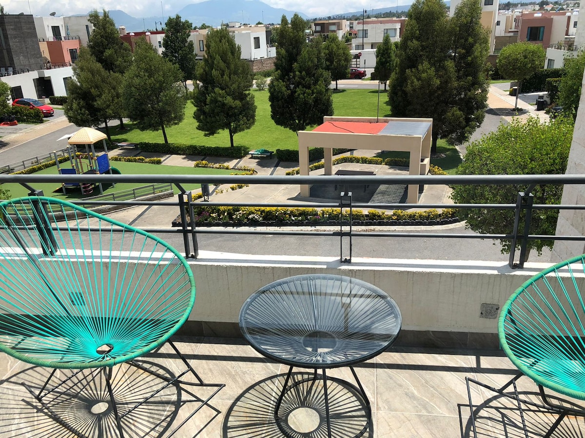 Uživajte u jedinstvenom boravku u našem udobnom potkrovlju otvorenog tipa s panoramskim pogledom na Tolucu. Uživajte u video nadzoru 0–24 i nenadmašnoj lokaciji, samo pet blokova od Vladine palače i pored trgovačkog centra Plaza Molino. To je savršen prostor za rad, opuštanje ili istraživanje centra Toluce, uz pogodnost da se Plaza Molino nalazi u zgradi, sa Starbucksom, kinom, restoranima, Oxxo trgovinom, Smart Fit teretanom i još mnogo toga.
