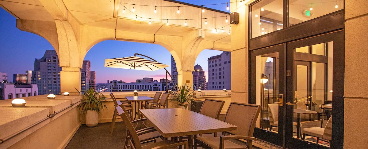 Steps from San Francisco’s vibrant Union Square, The Marker blends over a century of hospitality with modern elegance. This boutique Beaux-Arts hotel offers curated amenities like PATH water bottles, FloWater stations, and a 24- hour state-of-the-art fitness center. Dine at Tratto, serving rustic Italian dishes and craft cocktails. With concierge service, curbside valet parking, and California Green Lodging certification, The Marker pairs timeless charm with contemporary comfort.
