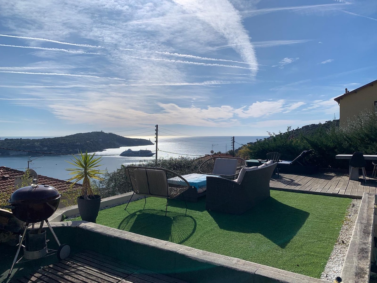 Dobro došli u „Vilu La Mrmotte” koja se nalazi u idiličnom okruženju između Nice i Monaka. Vila ima veliku terasu sa zadivljujućim panoramskim pogledom na more gdje se možete sunčati ili uživati u čarobnom zalasku sunca! Divan vrt u kojem možete jesti u hladovini ispod stabla tangerina za vruće dane. Dnevni boravak, 2 spavaće sobe sa bračnim krevetima, opremljena kuhinja, tuš kabina, odvojeni WC, Wi-Fi, televizor, mašina za pranje veša, mašina za pranje suđa, rerna, mikrovalna pećnica i samo 10 minuta hoda do plaže . "La belle Vie"!