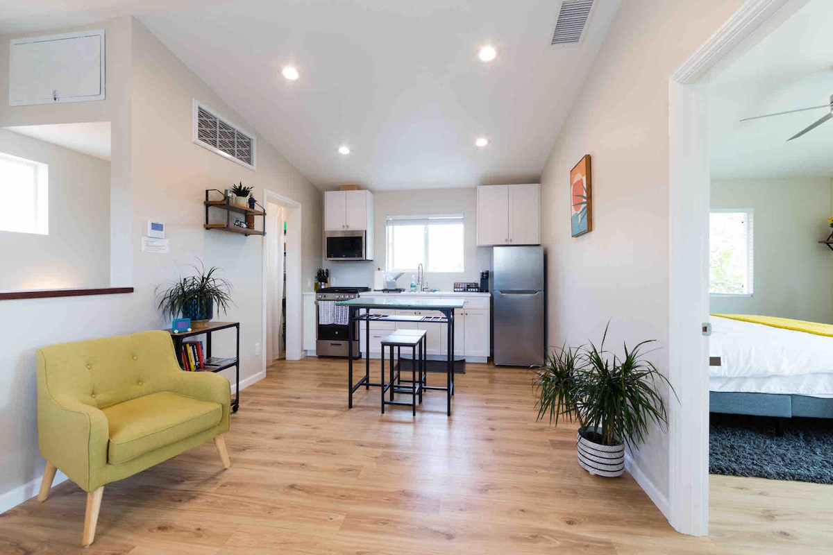 Ovo je vrlo sladak studio u blizini centra grada San Luis Obispo. Jedinica je VRLO mala, ali udobna i udobna. To je stražnja jedinica glavne kuće pa je poželjno da se gosti prema njima odnose s poštovanjem. Garsonjera ima potpuno opremljenu kuhinju, kutak za doručak i TV (nema mikrovalne pećnice i samo mali frižider). Krevet je izdignut i vrlo udoban. Dajemo sve od sebe da zadovoljimo potrebe gostiju dok borave u bungalovu. Oglašavamo tačno ono što je jedinica.