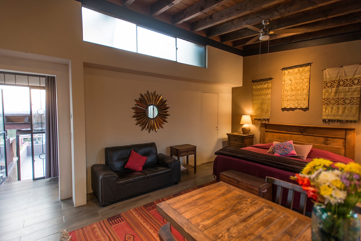 Ovaj privatni, elegantni i prostrani studio u San Miguel's Centru ima dvije privatne terase s panoramskim pogledom i mnoge sadržaje, uključujući kuhinju, vešeraj, bračni krevet, brzi internet i siguran parking. Smješten na rubu Centra, samo 200 metara od vrhunskog odmarališta „Live Aqua” i u blizini mnogih restorana i galerija, uključujući Artisan Market i Fabrica Aurora. Vaši domaćini, dugogodišnji stanari i radni konsijerž, dostupni su ako je potrebno.