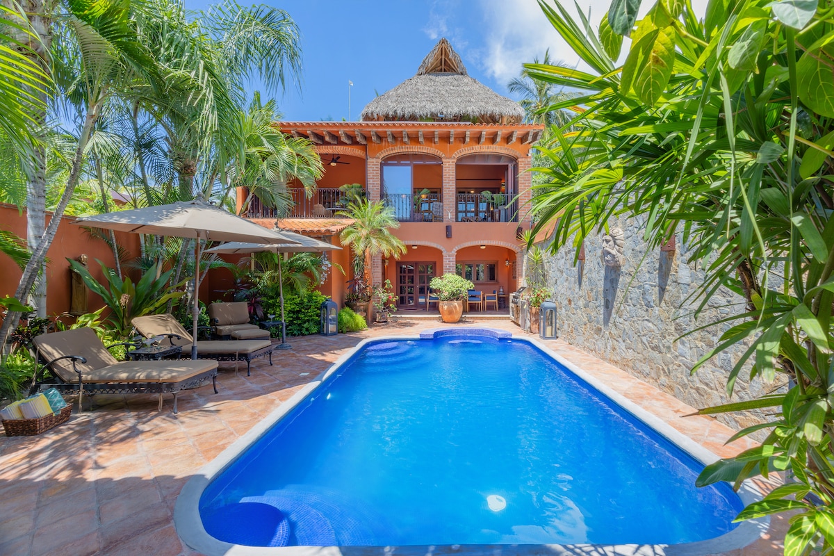 Moderna kuća na plaži, puno dnevnog svjetla, privatna, tiha, iza glavnog trga, dvije ulice od plaže, prekrasan pogled na džunglu i zalazak sunca, bazen, vrt, funky i udoban. Nalazi se u krugu od dvije do tri bloka od svih glavnih poslovnih subjekata (pješačka udaljenost do grada i plaže), a ipak se nalazi u mirnom kvartu. Volimo umjetnost i dizajn, tako da ćete dobiti osjećaj udobne kuće okružene detaljima za topao boravak. Savršeno za odmor ili dugoročni boravak + rad na daljinu sa satelitskom internet uslugom.