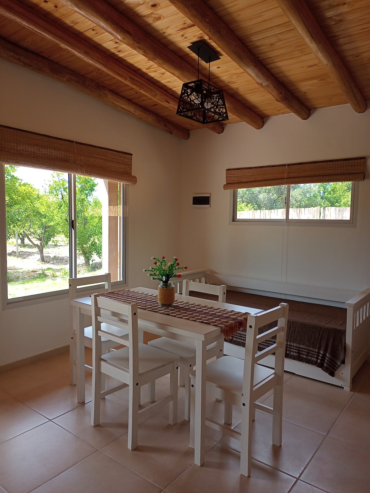Viví la magia de Villa 25 de Mayo, un pueblito histórico y pintoresco entre alamedas centenarias, montañas y espejos de agua que reflejan la calma del entorno. Nuestra casita Amaru te espera con vistas abiertas, jardín con flora autóctona y piscina estacional. Fue diseñada con amor para que descanses, respires aire puro y disfrutes de la armonía del paisaje. Cerca del río, bodegas y rutas del vino, es un rincón único de Mendoza donde naturaleza, historia y confort se encuentran.