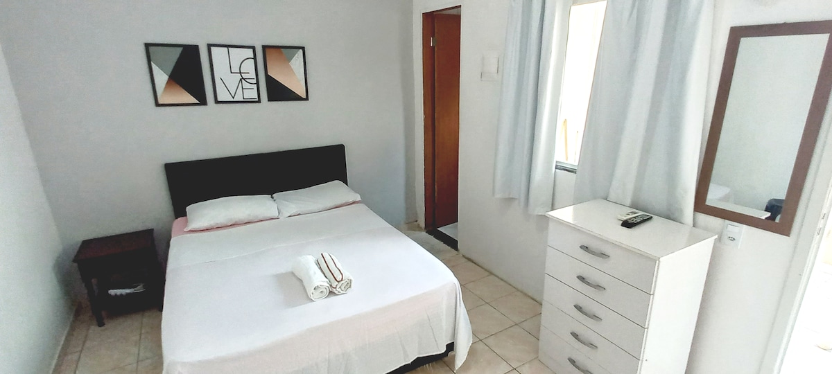 Spavaća soba sa zasebnim kupatilom. Naš apartman nudi privatni prostor za najviše 3 osobe s Wi-Fi mrežom, TV-om od 39inča s pristupom Netflixu/Amazonu, bračnim krevetom, krevetom za jednu osobu, minibarom i stropnim ventilatorom Pješice je: 2 minute od Praia dos Anjos ( s kojeg turistički brodovi idu na najljepše plaže u Brazilu) 5 minuta od autobuske stanice 5 minuta od pristupa Praia do Forno ( staza + 15 min) 16 minuta od Praia Grandea U blizini pekara, supermarketa, restorana, barova i apoteka.