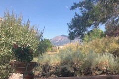 Welcome to your peaceful safe retreat in the best foothill neighborhood—just 7 min from I-40, 12 from I-25. Tucked away on a quiet cul-de-sac, this cozy in-law suite was created for loved ones. Enjoy your private entry, your own patio with outdoor dining and seating, and off-street parking. Feel at home as you relax in the serene 2/3-acre garden with a tranquil pond, tea hut, and deer visitors. Trails and grocery are a short walk away. Sip organic coffee, rest in all-white linens, and simply be.