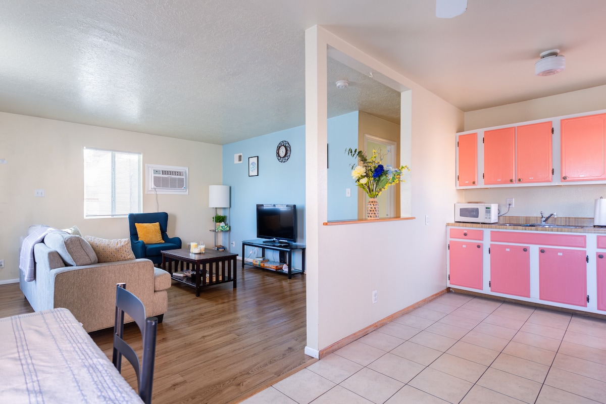 Tražite odmor od grada ili posjetite zemlju začaranosti za odmor? Placitas Getaway će biti savršen, posebno ako tražite mir i tišinu. Ali najbolji dio? Prekrasan pogled na veličanstvene planine Sandia iz vašeg kreveta! Tu je kuhinja u punoj veličini, frižider i tuš-kabina u punoj veličini. Uživajte u pješačenju po perimetru, a zatim zakažite privatnu kupku u hidromasažnoj kadi u glavnim prostorijama. Ali budite spremni za još jedan pogled koji oduzima dah. * bez NAKNADA ZA ČIŠĆENJE *