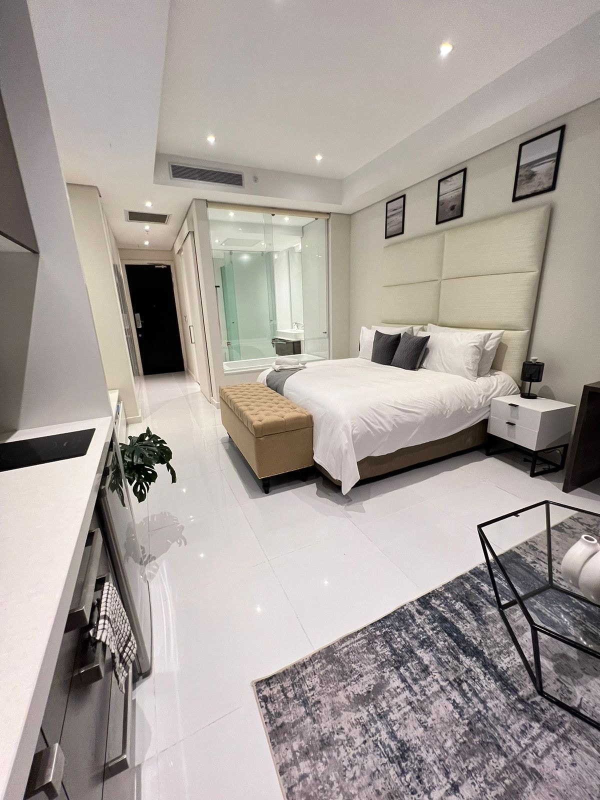 Zakoračite u svoje privatno utočište u srcu Sandtona, prekrasno dizajniranog studio apartmana idealnog za putnike koji putuju sami, parove ili poslovne goste koji traže opuštajući i udoban prostor. Uronite u mekani bračni krevet odjeven u vrhunsku posteljinu. Raspored otvorenog tlocrta protiče bez napora, nudeći udoban kutak za opuštanje, elegantnu čajnu kuhinju i vlastitu kupaonicu. Studio apartman ima Smart TV s Netflixom, Nespresso aparat za kafu, potpuno opremljenu kuhinju, klima uređaj i Wi-Fi.