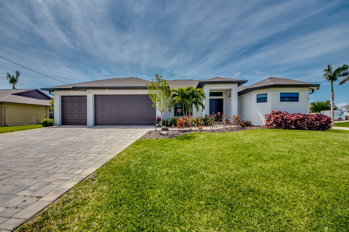 Unwind Cape Coral welcomes you to sunny southwest Florida, close to magnificent beaches, fishing, shelling, Minnesota Twins Spring Training & much more. Come enjoy this new construction home with heated pool, Kayaks, heated and cooled game room (PlayStation 5), gulf access - salt water canal, 4k oled tv's & many more refreshing amenities. You will love this clean & bright home with lovely décor. Located in the highly sought after Pelican neighborhood of Southwest Cape Coral!