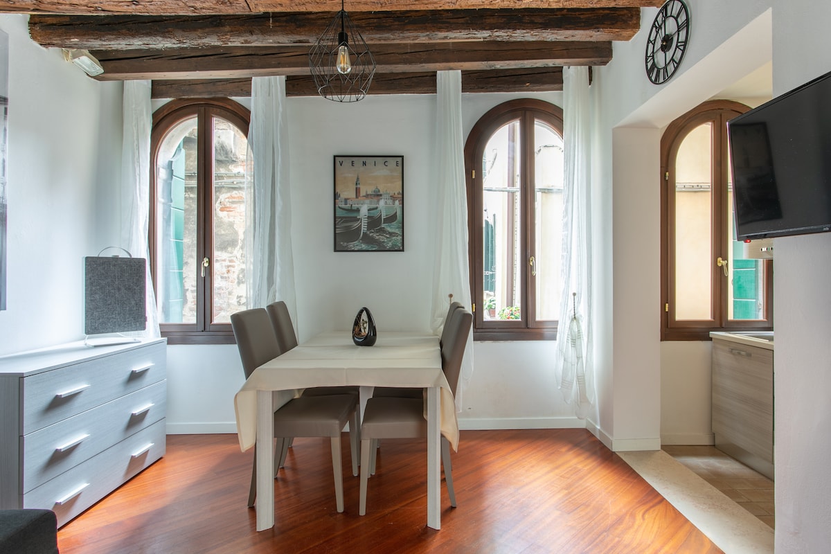 Novouređeni stan koji se sastoji od jedne spavaće sobe, kupatila, kuhinje, dnevne sobe i privatnog namještenog dvorišta. Stan je opremljen udobnošću kao što su: 2 pametna televizora, frižider, pećnica, mašina za suđe, sušilo za kosu, Air-Con i WI-FI. Stan se nalazi 8 minuta hoda od mosta Rialto i 15 minuta hoda od trga San Marco. Željeznička stanica je udaljena samo 5/6 minuta od stana. Najbliži supermarket je također udaljen 4 minute hoda od stana.