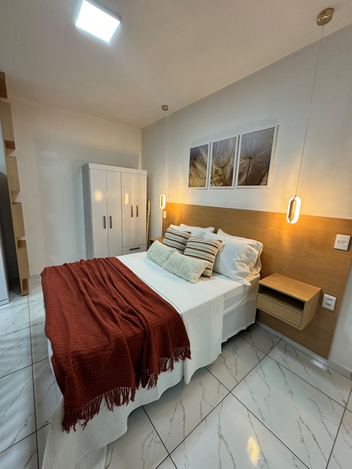 O apartamento é novo, moderno e conta com garagem privativa, oferecendo conforto e praticidade no centro da cidade. Com um quarto aconchegante, sala com sofá-cama, cozinha equipada e ar-condicionado quente e frio, é ideal para qualquer ocasião. E a localização privilegiada coloca você ao lado de farmácias, restaurantes e padaria. O prédio conta com portaria 24 horas e com estrutura completa, incluindo coworking, lavanderia, piscina, salão de jogos e academia. Perfeito para o turismo ou trabalho.