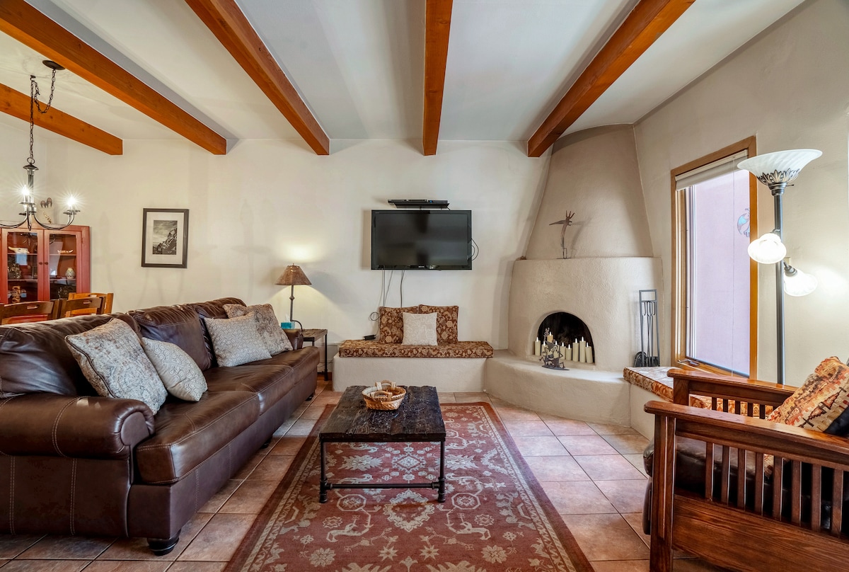 Naša šarmantna historijska klasična adobe casita je jednostavna desetominutna šetnja do trga Santa Fe, restorana i muzeja. Nudimo privatni parking van ulice za dva vozila. Unutrašnjost sadrži klasične drvene grede u stilu Santa Fea Viga, kiva kamin opremljen drvetom, krovne prozore, potpuno opremljenu kuhinju, privatnu spavaću sobu, kadu za kupanje, moderne uređaje, mašinu za pranje i sušenje veša, hladnjak u močvari, WI-FI, TV ravnog ekrana, lijepo ograđeno dvorište sa zrelim drvećem i roštiljem. Psi su dobrodošli.