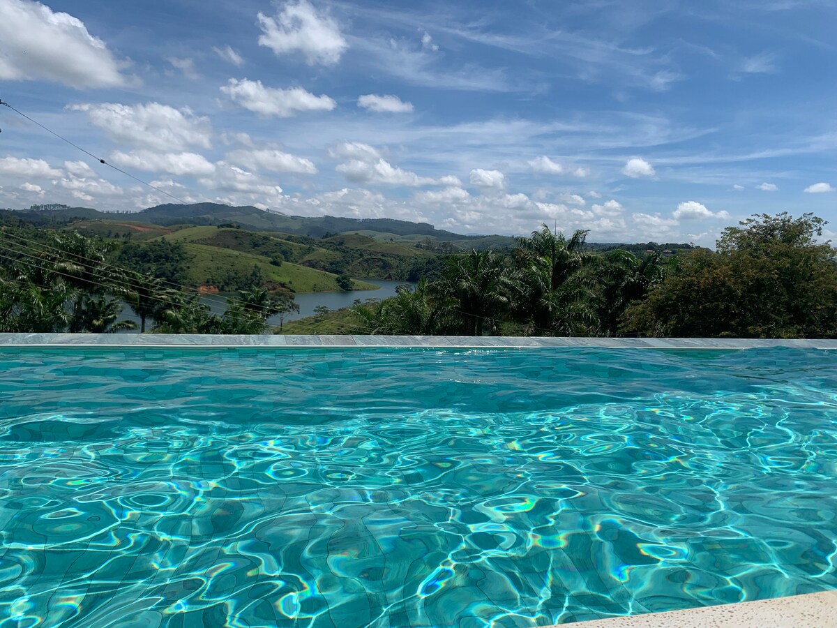 Kuća na selu s prekrasnim pogledom, bazenom i punim slobodnim vremenom, za opuštanje u mirnom gradu Igaratá. Veliki dnevni boravak, roštilj i službena soba s bazenom, za ekskluzivnu upotrebu gostiju. Udoban smještaj i kompletna kuhinja, laptopovi, posuđe i pribor. Brzi Wi-Fi, udobnost za kućni ured. Stropni ventilator u spavaonicama. U blizini centra, raznolika trgovina, mirna ulica lokalnog saobraćaja. Kamin u dnevnoj sobi, udobnost u hladnijim večerima.