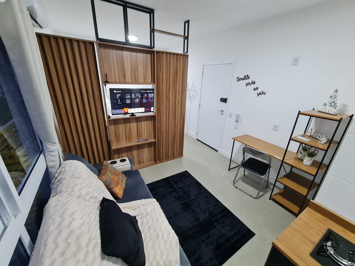 Apt Studio located in the center of Sta Maria, new building, corner with UFN, close to the boardwalk, supermarket, bars. restaurants and Pubs. Ima 1 bračni krevet, klima-uređaj, Smart TV, otvoreni ormar, opremljenu kuhinju, kupatilo, dnevni boravak s presvlakama i radnim stolom. - Zgrada za pranje veša ( plaća se o trošku gosta) - Zgrada s teretanom. Stan na desetom spratu s prekrasnim i širokim pogledom na grad. Ima 350 mega Wi-Fi mreže. Dođite i upoznajte se i budite očarani nevjerovatnim pogledom na grad.