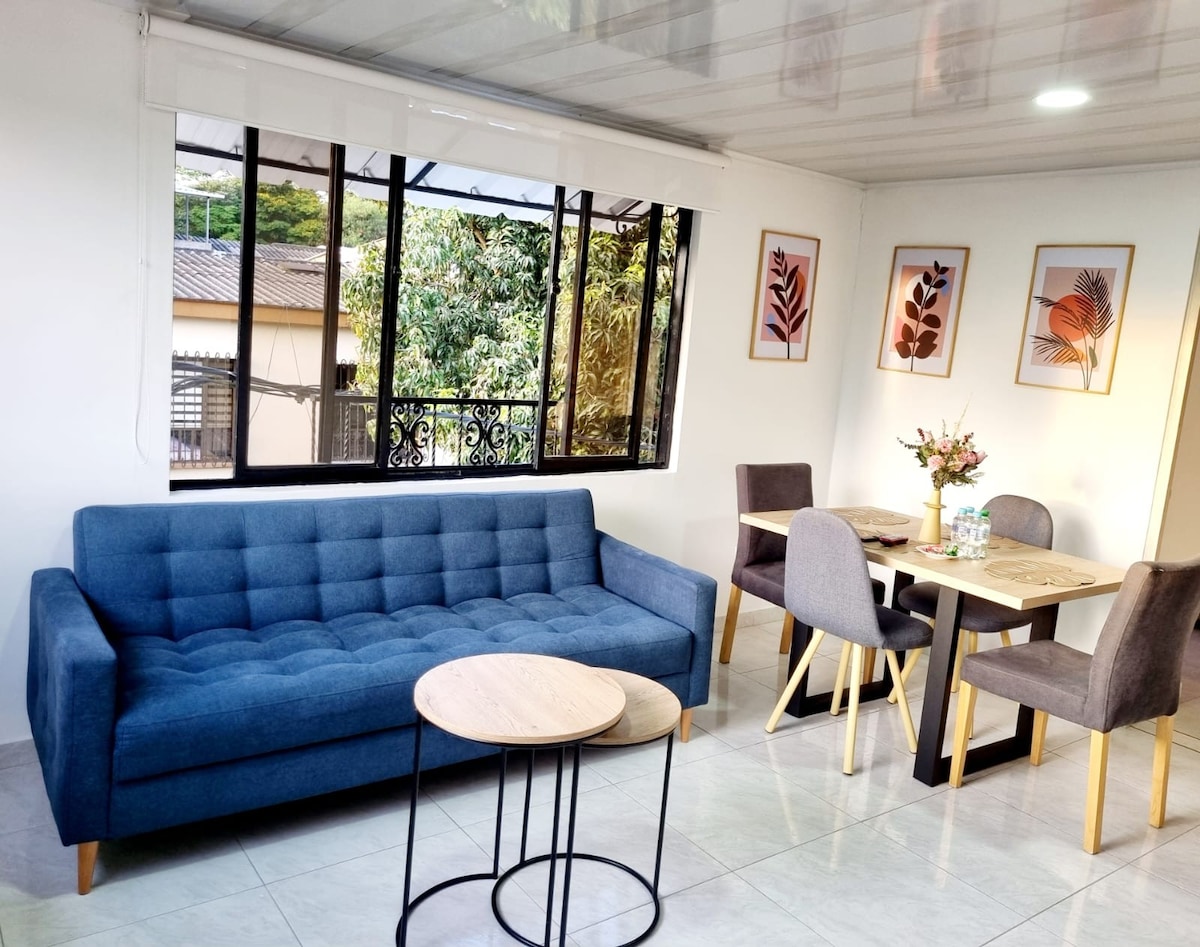 Apartamento moderno en zona residencial tranquila, ideal para parejas que buscan descanso y privacidad. Cuenta con habitación principal con cama queen y baño privado, además de sofá cama doble con acceso a segundo baño completo, cómodo para hasta 4 personas. Parqueadero privado, WiFi estable, y agua caliente. A 10 minutos en carro del centro y puntos turísticos. Disfruta café y aromáticas de cortesía para empezar el día con tranquilidad. Contamos con póliza hotelera.