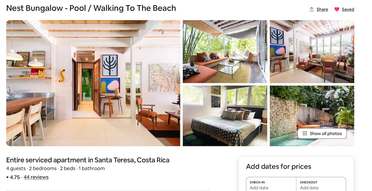 Renovirana u augustu 2023. godine, Modern Casita je vrhunsko utočište za parove i putnike. Uronite u bujnu džunglu, probudite se uz zvuk majmuna koji urlaju i uživajte u ranim jutarnjim šetnjama do Playa Hermose - savršene za surfere svih nivoa i one koji traže opuštenu atmosferu. Mirna priroda vas okružuje. Samo nekoliko koraka od plaže i 3 minute vožnje do supermarketa, ova opuštena, zelena površina je također samo 7 minuta od živahne Santa Terese. ;)