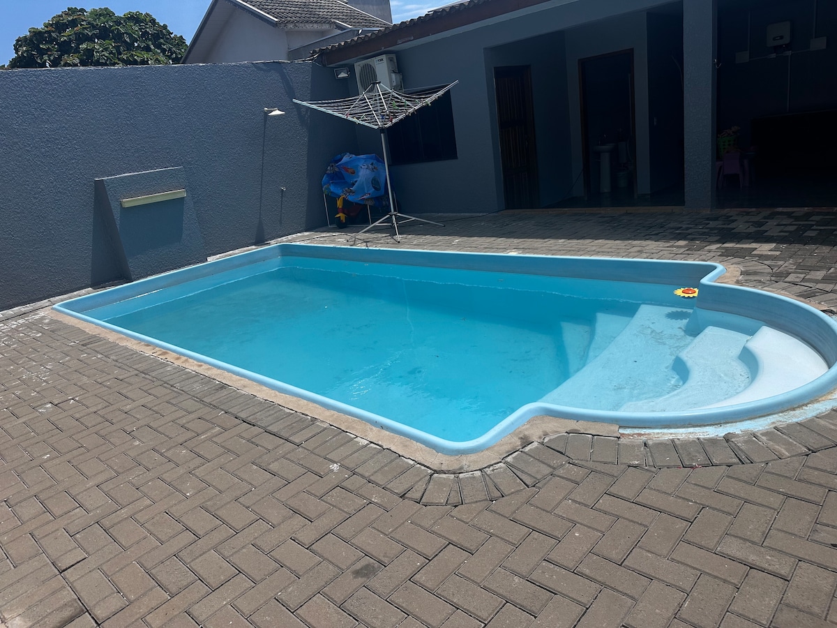 Ako je dobro, dovedite cijelu porodicu u ovaj odličan smještaj s dovoljno prostora za zabavu, vrlo veliki prostor sa svime što vam je potrebno da provedete posebne trenutke s onima koje volite, bazenom od 6 metara i velikim prostorom od 475 metara, spavaćom sobom s bračnim krevetom, krevetom za jednu osobu i kaučem na razvlačenje u dnevnoj sobi( klima uređaj samo u spavaćoj sobi). Jednostavan pristup glavnim znamenitostima Foz do Iguaçu, Paragvaja i Argentine.(ne dozvoljavamo događaje, niti višak ljudi)