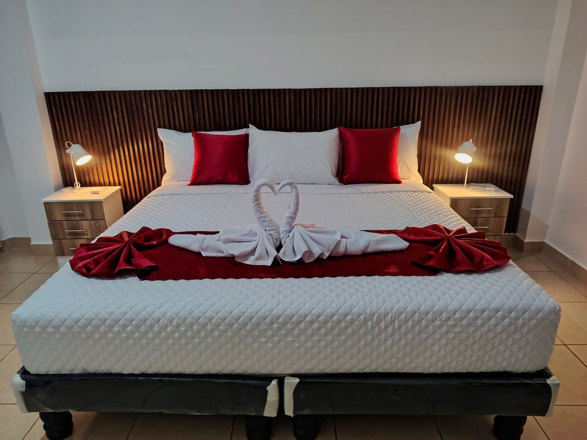 Odličan stan na strateškoj lokaciji, idealan za četiri osobe. Uz klima-uređaj i besplatan parking, idealno za porodice ili grupe. savršena lokacija za rad ili turizam. Blizu supermarketa (Aki i Tuti), KFC restorana, trgovine odjećom Super Éxito i trgovina željezarijom Kywi i Pintulac. „Odličan stan na strateškoj lokaciji, idealan za najviše četiri gosta. Ima klima-uređaj i besplatan parking u sklopu objekta. Blizu supermarketa Tuti / Aki, KFC restorana.