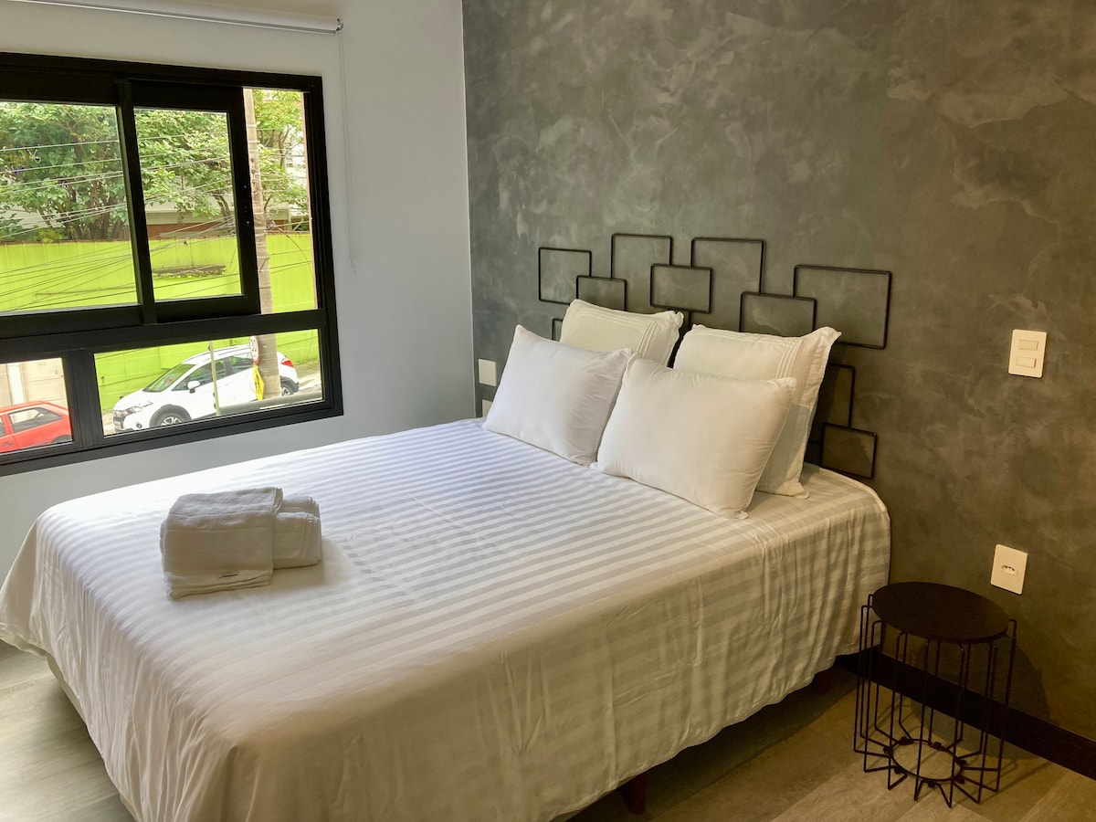 Dobro došli u Ruya Flat, idealan za one koji traže udobnost, privatnost i odmor u blizini plaže! ✨ Opustite se u privatnoj masažnoj kadi nakon cjelodnevnog istraživanja São Vicentea. Može primiti do 4 gosta (uključujući djecu i bebe), što je savršeno za parove, male porodice ili grupe. 🍳 Potpuno opremljena kuhinja 📺 Smart TV 📶 Brza Wi-Fi mreža 📍 Strateška lokacija: u blizini obale i glavnih turističkih atrakcija grada