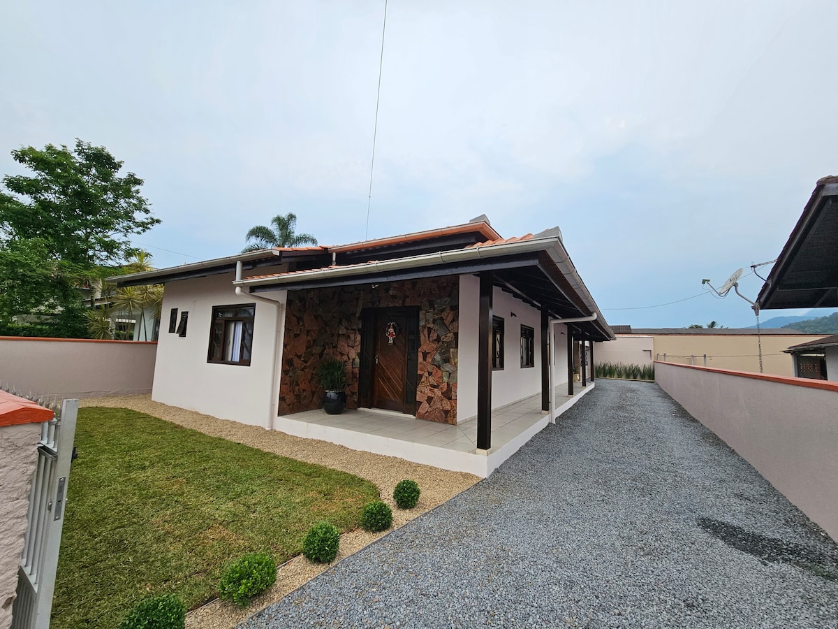 Samo 15 minuta od centra Joinvillea. Velika kuća s prekrasnim vrtom i bazenom za vas i vašu porodicu da uživate u najboljem što seoska sredina nudi. 3 spavaće sobe (1 s privatnim kupatilom), 3 kupatila, roštilj, pećnica i peć na drva, plus bazen i jezero za ribolov. Idealno za miran vikend. Mjesta za ovu sezonu već ponestaju, zato se pobrinite da zauzmete svoje.