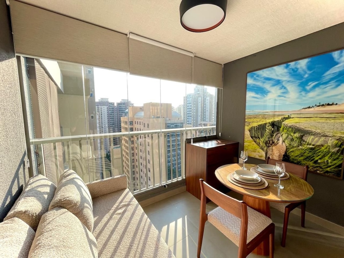 Novi studio s panoramskim pogledom — 24. sprat s beskonačnim bazenom i stilom! Uživajte u São Paulu udobno i sa stilom u našem studiju, uređenom s ljubavlju kako bi vam poželio dobrodošlicu. Nalazi se na 24. spratu sa *180° staklenim pogledom na autoput Pinheiros*. Moderno utočište, idealno za one koji traže praktičnost, udobnost i jedinstveno iskustvo u gradu.