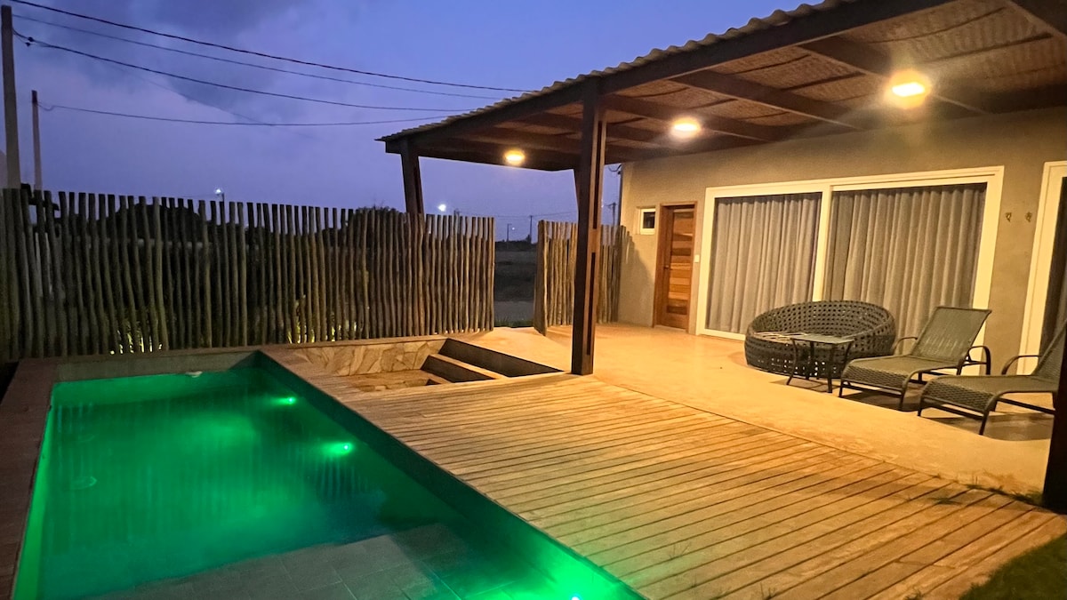 Casa ideal para familias, parejas y grupos de amigos. Cuenta con 2 dormitorios, 2 baños completos con gran presión y temperatura, cocina bien equipada, sala integrada con sofá-cama y Smart TV. WI-FI de alta velocidad. 🌳 En el exterior: cuidadoso jardín, galería techada con parrilla y piscina con hidromasaje e iluminación LED, para relajar. También ducha externa, reposeras y hamacas 📍 A pasos de las mejores playas y en barrio muy tranquilo a 5 minutos del centro del pueblo