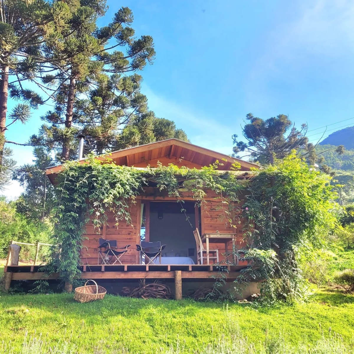 Cabana na Mata je mjesto povezanosti s prirodom, unutar velike atlantske šume nadmorske visine. Selo ima udobnost male drvene kuće na planini s puno privatnosti, Starlink, kristalno čistu izvorsku vodu zagrijanu plinskim tušem i drvenom peći, srcem kuće. Ljeti, u kišnoj sezoni, važno je imati vozilo s pogonom na sva četiri točka, ali ako ga nemate, pomoći ću vam da stignete tamo. Nacrtajte svoje namirnice i dođite u šumsku kupku kako biste obnovili svoju energiju! Bit ćete vrlo dobrodošli