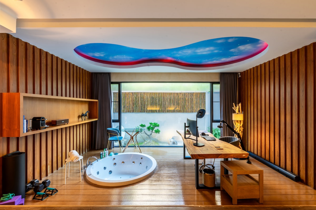 Wake up in a space designed for focus, creativity and deep rest. You just had a silent night, surrounded by nature, far from traffic and city noise. Make yourself a Nespresso coffee. Sit by the window, facing your Japanese-style garden view, softly illuminated. Plug your laptop into a 34-inch curved monitor at a solid wood desk, or work comfortably from bed when you feel like slowing down. - 20 minutes to Nimman - Jacuzzi - Smart TV - Equipped Kitchen - Modern Bathroom & walk-in closet