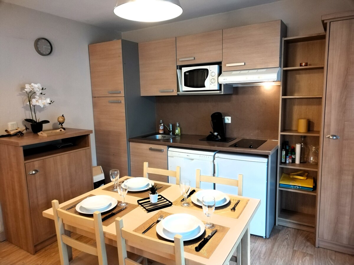 Odlično ćete se provesti u ovom udobnom smještaju. Ovaj veliki studio apartman otvorenog tlocrta se sastoji od bračnog kreveta od 140 cm i malog kauča na razvlačenje od 120 cm, idealno pogodnog za djecu ili povremenu upotrebu. - Pametni TV s ravnim ekranom. - Mali gorionik na pelete koji savršeno zagrijava prostoriju. - Kupatilo pune veličine. - Potpuno opremljena kuhinja s rernom, mikrovalnom pećnicom, dvostrukom pločom za kuhanje i sudoperom. - Aparat za kafu (tassimo) - Barski doručak za 4 osobe.